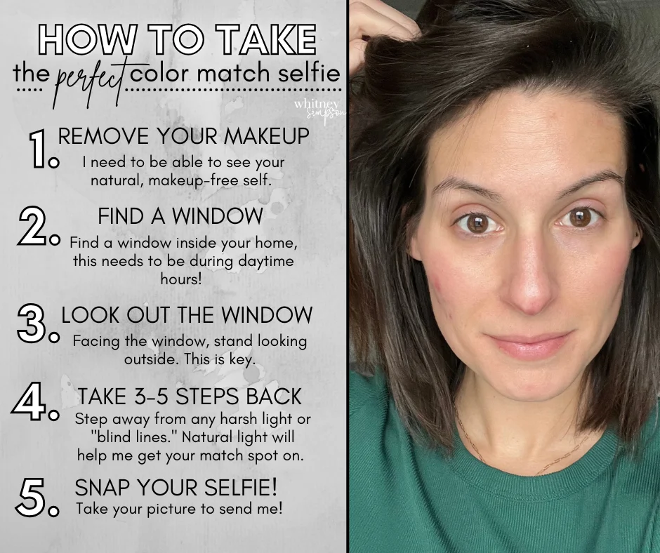 For me to get you the most accurate color match, please upload a selfie without makeup. Find a window in your home, stand in front of it and snap a selfie.